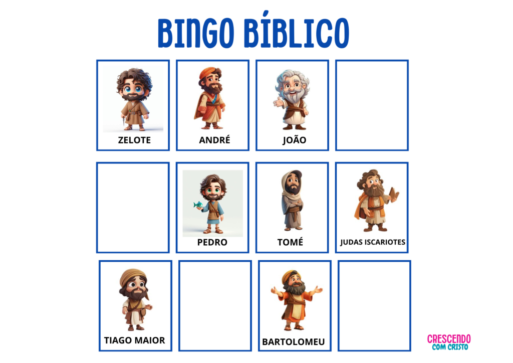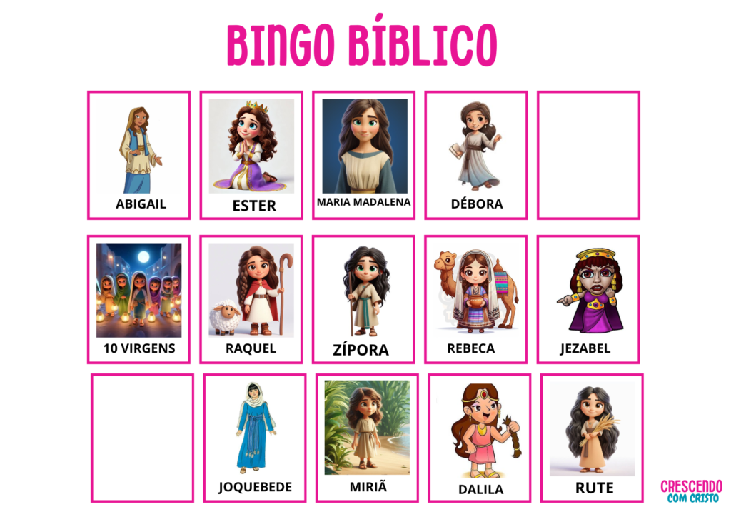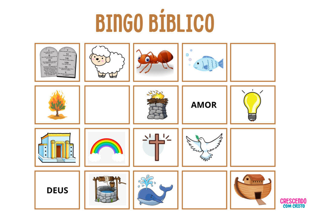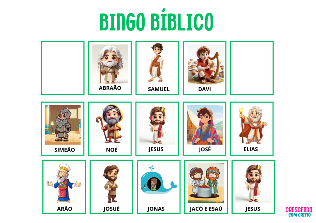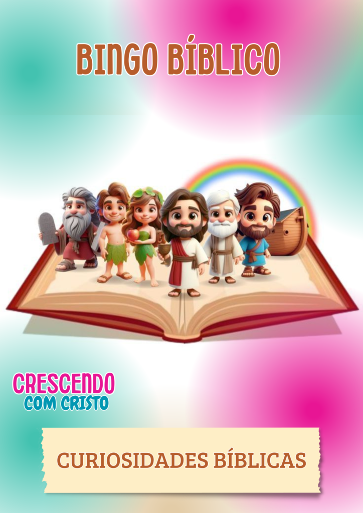 ✅ 4 cartelas diferentes para as crianças jogarem ✅ Fichas de chamada com curiosidades sobre os personagens e elementos bíblicos