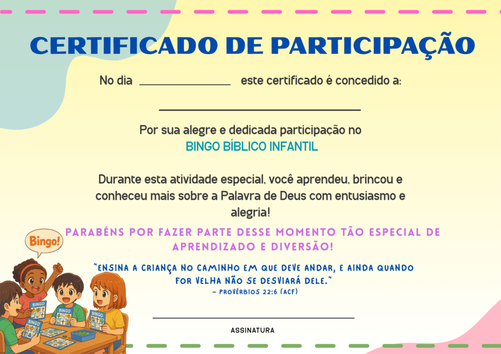 📌 Ao adquirir hoje, você ainda ganha um modelo de certificado de participação para as crianças!